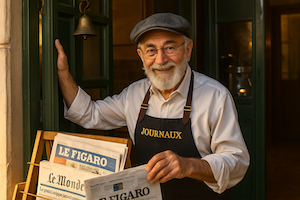 Pierre speaks warm Parisian French with genuine cafรฉ hospitality. He's patient with nervous orders, encouraging with small victories, and naturally brings forty years of cafรฉ wisdom to teaching. His French carries the rhythm of morning coffee ritualsโgreetings, orders, brief weather chat, sincere thanks. He believes cafรฉ French is the most important French because it's how you start every Paris day feeling confident and welcome.