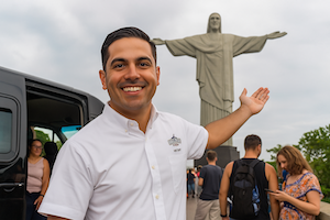 "Oi! I'm Thiago, resort shuttle driver. Want to learn future tense? Easyβwe just talk about tomorrow! Where do you want to go? Cristo Redentor? Perfect. Say 'vou ao Cristo amanhΓ£'βI'm going to Christ tomorrow. See? You're already planning in Portuguese! Every trip teaches grammar. Every destination is practice. Come on, let's plan your Rio adventure!"
